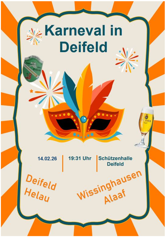 „Deifeld Helau“ und „Wissinghausen Alaaf“ heißt es wieder am Karnevalssamstag in unserer Schützenhalle. Die besten Stücke von Frauengemeinschaft, Jugendgruppe und Co wollen eure Lachmuskeln ordentlich in Bewegung bringen.